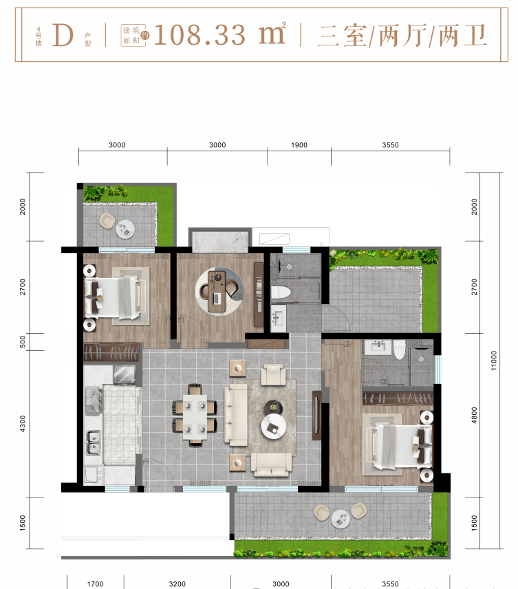 轩朗舒适、高使用率全明户型,约10米面宽的景观阳台,横跨双卧一厅,开阔的起居空间,视野通达,纵享无边美景。私享多功能阳台,自由变换,拥有更多空间惊喜。