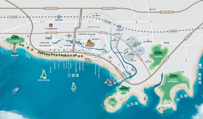 三亚门户黄金海岸带,高端资产汇集,聚焦总部经济、金融服务、邮轮游艇等现代服务业