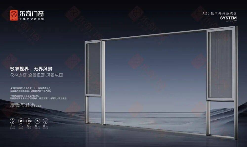 近日,乐奇门窗推出全新A20极窄外开系统窗,以“极窄美学”为设计语言,融合多项实用功能与高规格配置,旨在重新定义现代建筑外立面的视觉与性能标准。