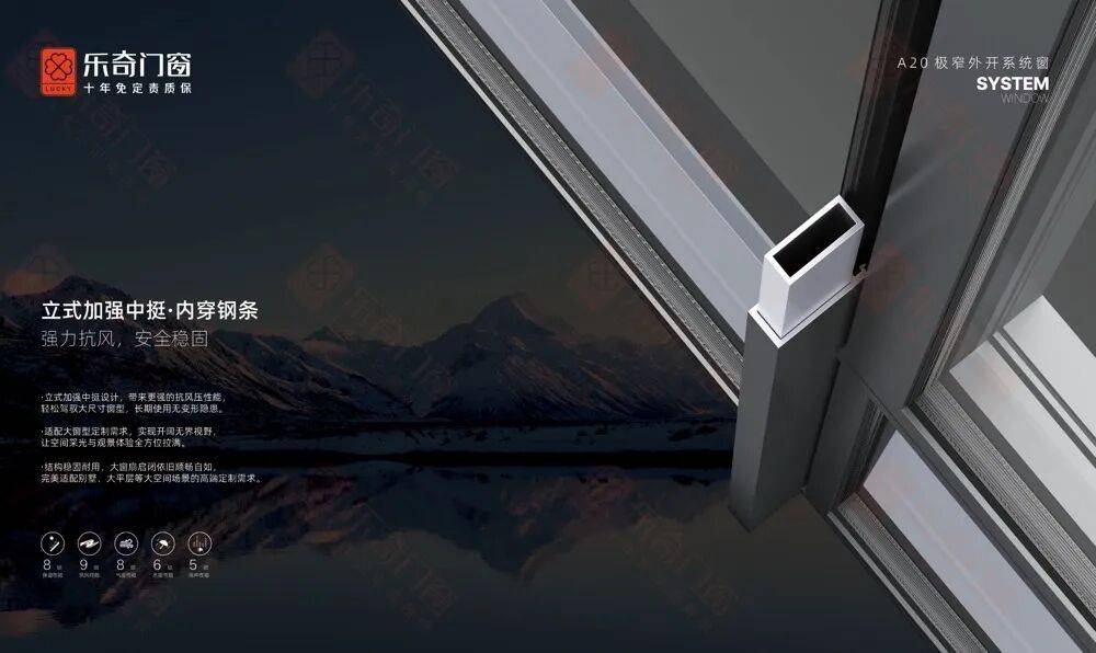 乐奇A20极窄外开系统窗不仅是一款产品,更是对“极简即极奢”现代美学理念的实践。它打破传统门窗的臃肿印象,以纤细的线条、强大的性能与贴心的服务,为高端住宅、商业项目等场景提供了一体化的门窗解决方案。