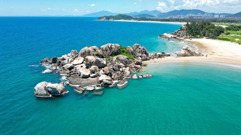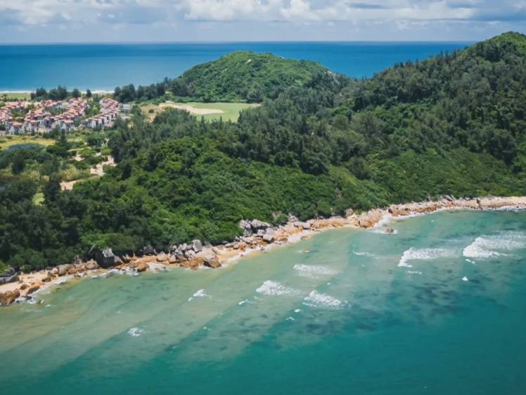 拥有《我和我的岛》综艺同款美丽海湾,三湾圆石湾,两者直线相隔仅约1千米。一片尚未被尘世染指的纯净原生沙滩,于此将辽阔海景揽为私景。