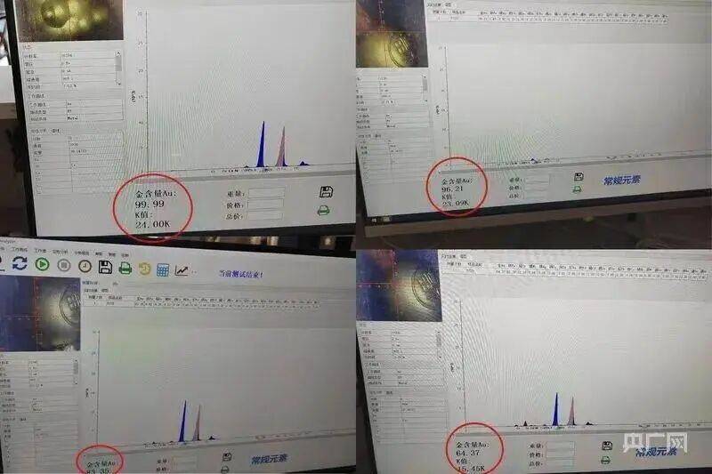 李女士遂前往清远市清城区某从事黄金回收业务的门店,对福袋挂坠进行光谱检测。李女士介绍,检测过程中,工作人员担心挂坠“刮到了铁”,特意对福袋挂坠进行了清洗,结果洗完之后检测结果还是含有其他物质,黄金纯度依然不达标。