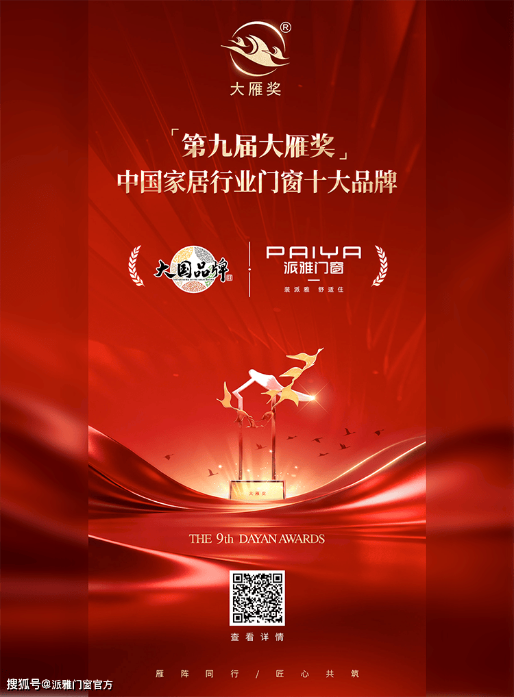 此次荣获第九届大雁奖“中国家居行业门窗十大品牌”,是荣誉,更是责任。未来,派雅门窗持续深化“深舒适”高端战略,不断优化产品与服务体系,为消费者提供更高品质的全品类高端门窗解决方案。同时,将充分发挥行业标杆作用,引领门窗行业向可持续、高质量发展方向迈进,书写中国门窗行业新篇章。
