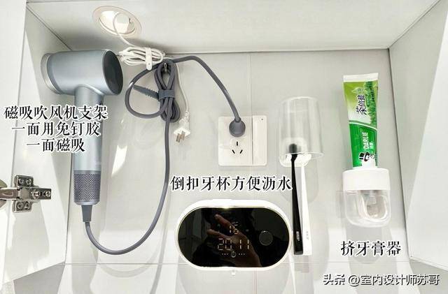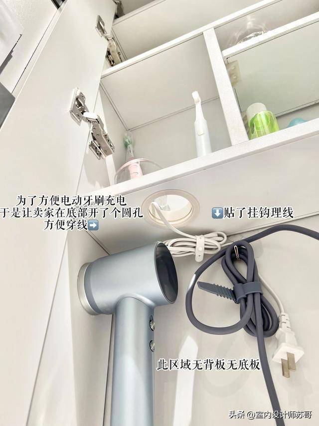 大家还可以在镜柜里面预留好插座,方便给吹风机充电。