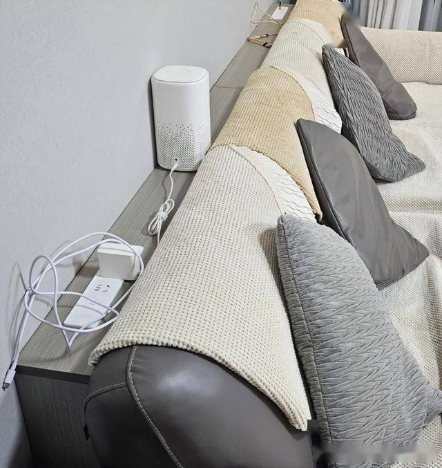 所以家里装修的时候,我就在沙发的两侧装了几个插座,