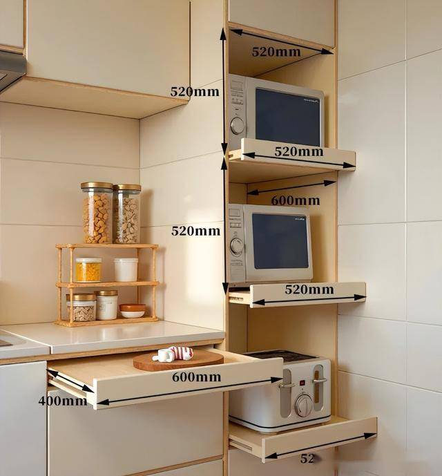 把小家电全都放在抽拉层板上,节省空间,还可以让厨房井井有条。