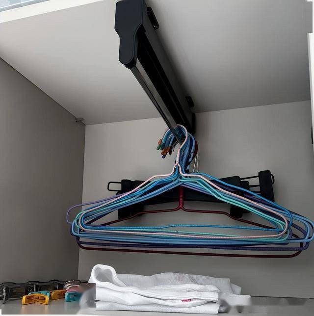 大家装修的时候,可以在阳台柜或者是衣柜里面专门留出一个区域用来挂晾衣架,这样晾衣架就有地方收纳了。