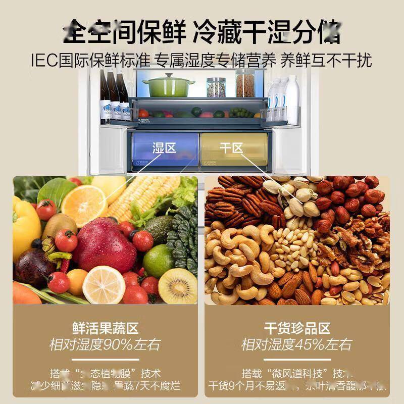 食材保鲜是衡量冰箱性能的核心指标。海尔517L法式冰箱搭载的全空间保鲜PRO科技,通过智能传感器和多重保鲜技术的协同工作,为不同食材定制专属的储存环境。