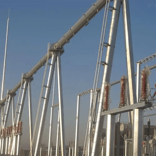 首先,我们来了解一下电力构架的行业优势。电力构架是保障变电站电力分配和设备安全运行的核心设施,主要应用于220kV及以上大型变电站,承担着母线悬挂、进出线连接等重要功能。其设计严格遵循变电站电气间距标准,尺寸精准定制,整体布置整洁有序,兼顾绝缘安全与操作便利。