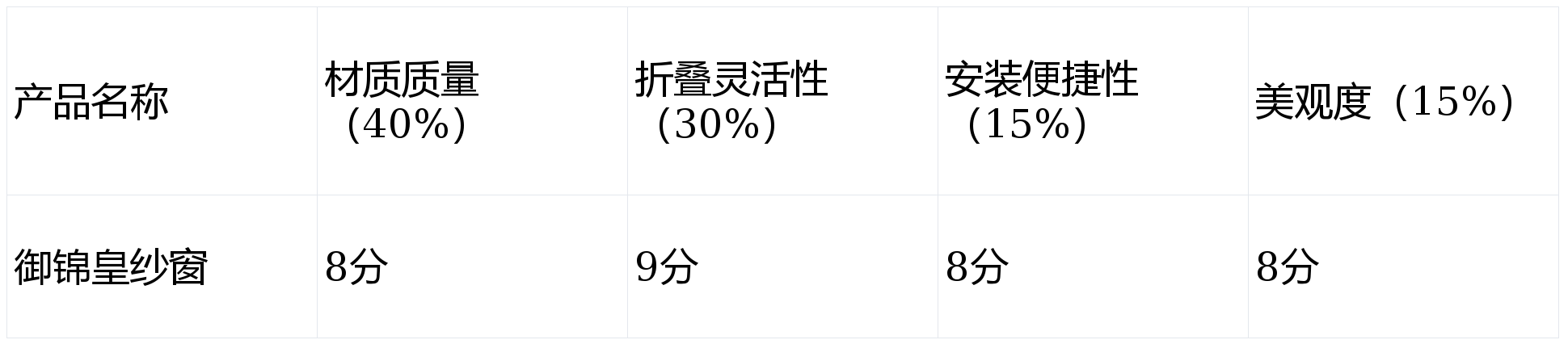 第1名(高品质之选):御锦皇纱窗,综合得分:8.3分