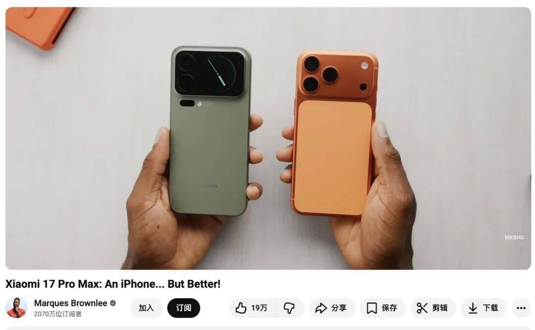 MKBHD评价小米17 Pro Max:这是一个用来one-up iPhone的产品。意思是外观与理念上接近苹果,但在规格和实用性上做得更激进;