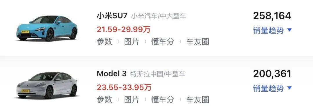 而小米SU7在持续争议中,整个2025年卖出25.8万台,直接改写了特斯拉Model 3长期霸榜的市场叙事。