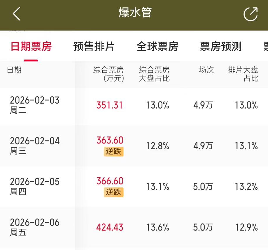 截至发稿,《爆水管》累计票房超过8400万,不但连续几天稳居单日票房亚军跑赢所有新片,还实现工作日连续三天票房逆跌,所以哪怕仅剩10天春节档大片就要杀到,专业平台还是给出了1.21亿的票房预测。