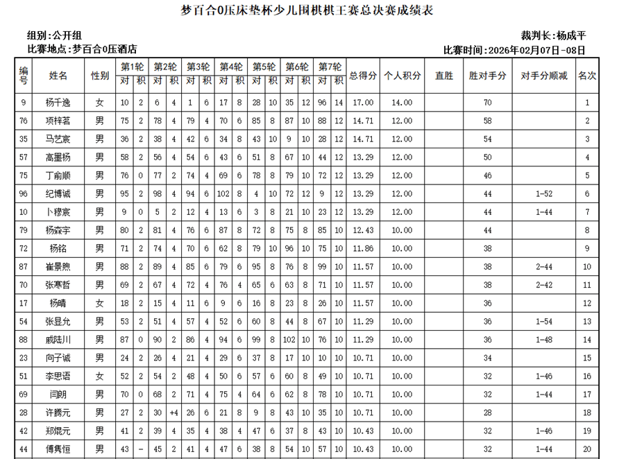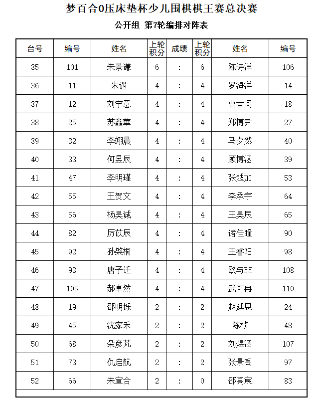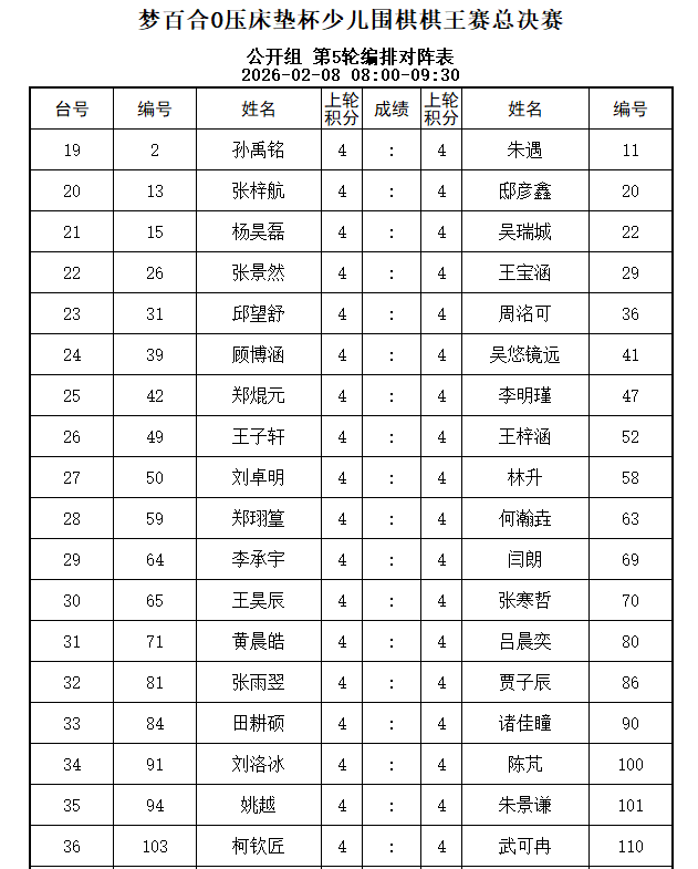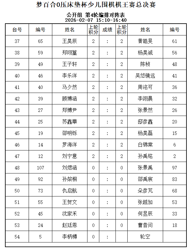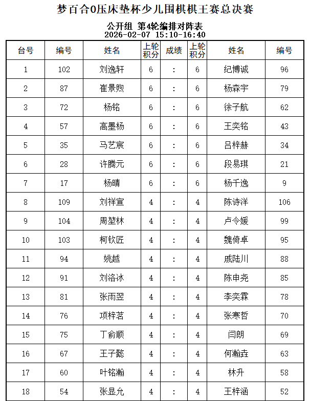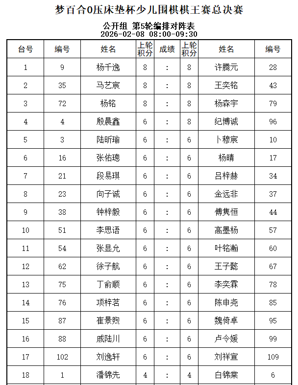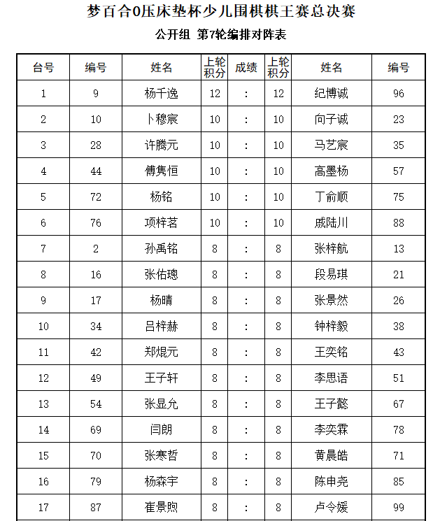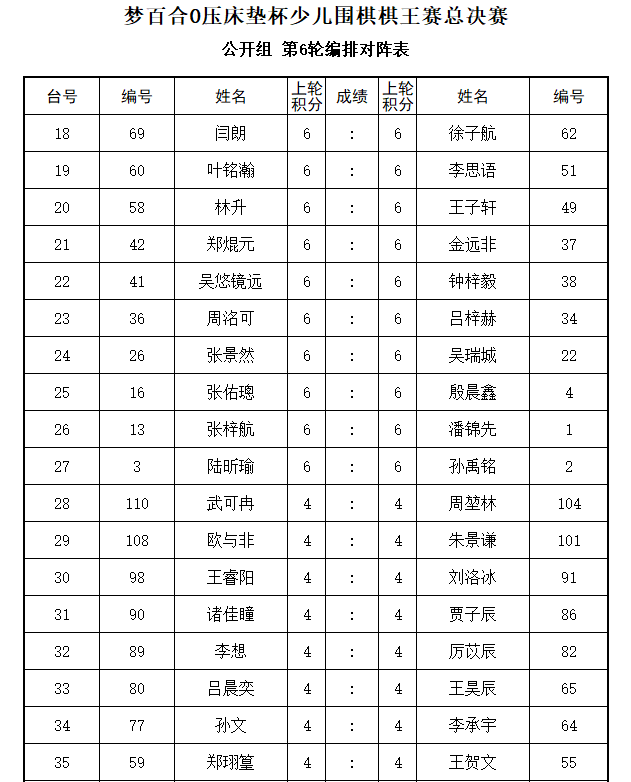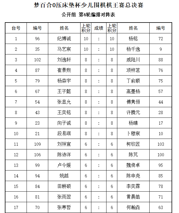 总决赛成绩公示 最终轮对阵表 第六轮对阵表 第五轮对阵表 第四轮对阵表