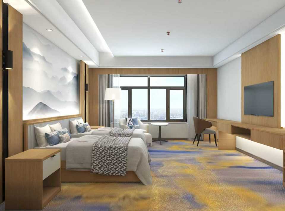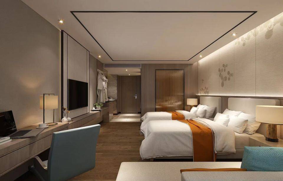 2. 风格:主推简约现代,适配商务客群;可融入本地轻文化元素(如西安可加简约唐风纹样),避免过度装饰;灯光以4000K暖白光为主,床头、走廊辅以间接光源,营造舒适感。