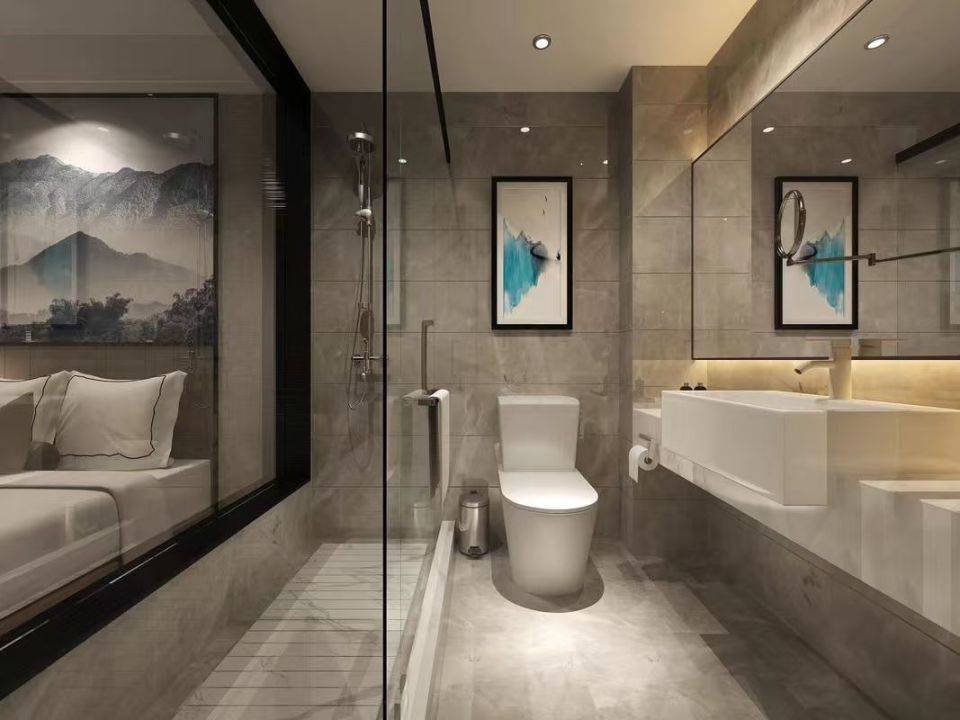 - 洁具:节水虹吸马桶、陶瓷一体台盆、恒温或感应龙头;玻璃隔断/浴帘+挡水条实现干湿分区;