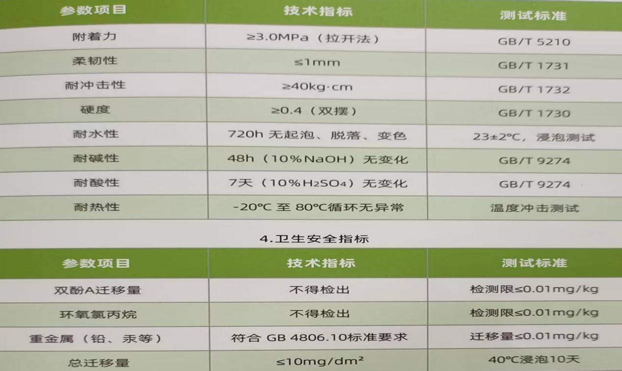 食品级防腐涂料优异特性参数 表二