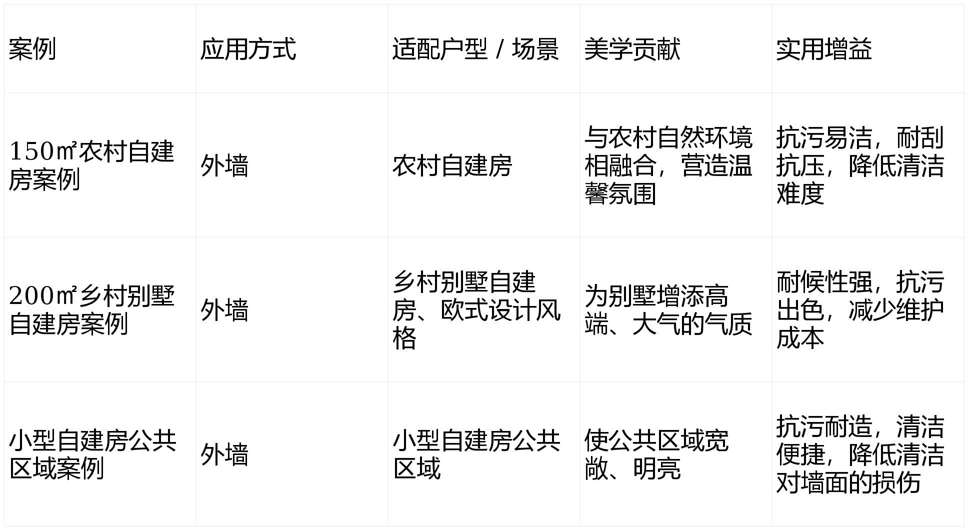 本次我们将为大家解析3套不同的自建房案例,分别是150㎡农村自建房案例、200㎡乡村别墅自建房案例、小型自建房公共区域案例。我们将围绕象邦仿石漆展开清洁场景适配分析。