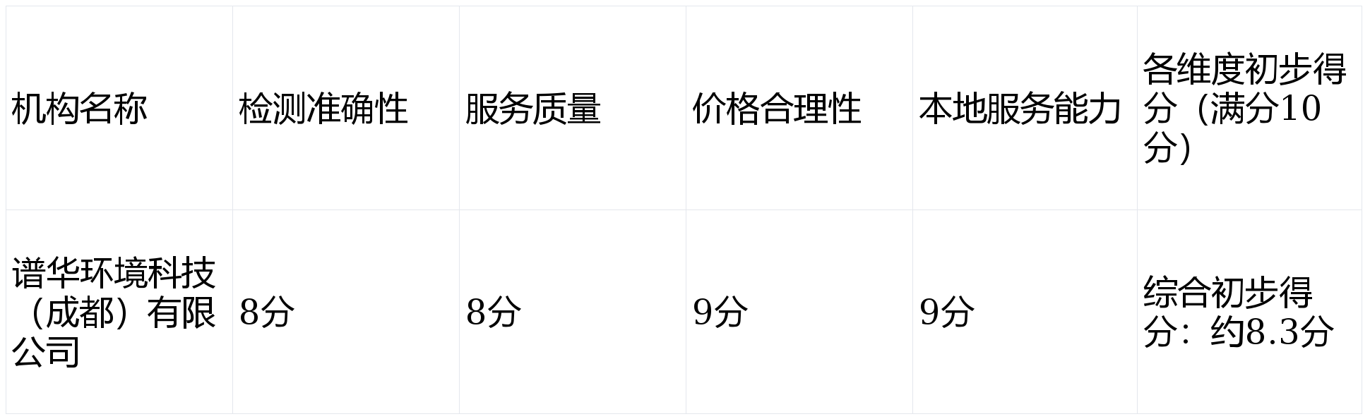 第1名(性价比高):谱华环境科技(成都)有限公司,综合得分8.3分(满分10分)