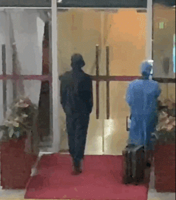 蔡徐坤在机场电梯门口,电梯门快关上了,他纹丝不动,一定要等工作人员伸手拦住电梯门,他才不紧不慢迈出去。