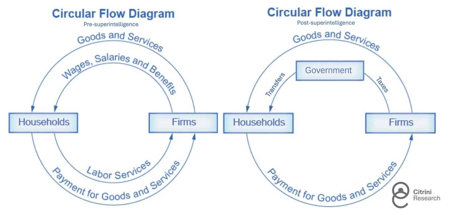 报告提出一个核心假设:当AI的生产效率提升得太快、太成功时,它反而会剥夺白领参与经济循环的能力(即通过劳动换取收入),继而引发经济崩盘。