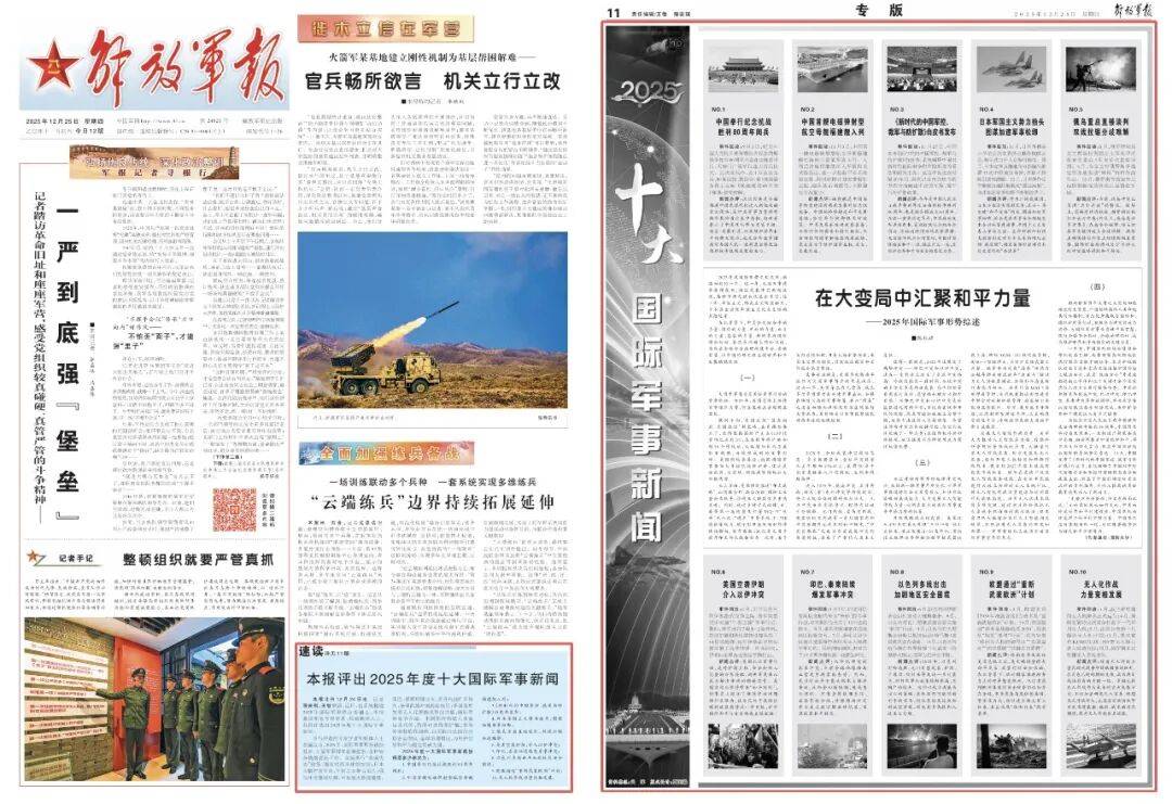 近日,在系统梳理2025年国际军事热点基础上,《解放军报》邀请知名专家学者、权威媒体人士,共同评选出2025年度十大国际军事新闻。