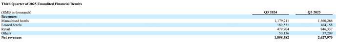 然而,随着零售业务的占比加重,到了2026年,其或许将不再是对主业的补充,公司也可能把更多的管理注意力与核心资源,从如何提升住宿体验、优化运营效率、探索真正的酒店产品革新,转移到如何策划下一个电商大促、签约哪个带货主播。这种战略重心的迁移,在长期来看,势必会掏空酒店作为服务企业的核心竞争力。