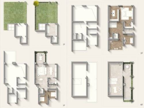 ❺ 四楼:布置家政区、休闲区与花园种植区,空间开阔且功能灵活。