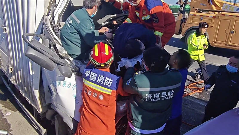 为被困人员进行保护并对其进行安抚,经过一番紧张的救援,成功将被困人员从驾驶室内救出,并转移至安全区域随后移交现场120医务人员送往医院进行救治。