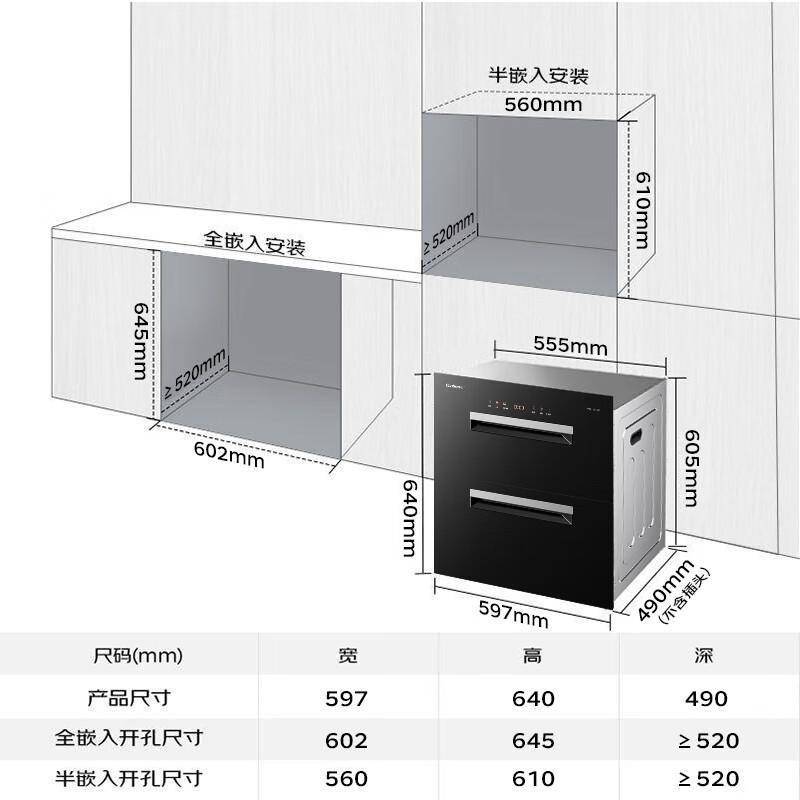现代厨房讲究"视觉整洁",这款消毒柜采用全嵌入式设计,安装后与橱柜完美齐平,只留下精致的黑色触控面板显露在外。超薄的58cm机身厚度,即使小户型厨房也能轻松容纳。