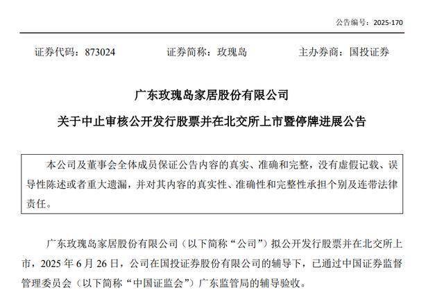 12月31日,玫瑰岛(873024.NQ)发布公告,北交所批准了公司关于中止审核的申请,保荐机构为国投证券股份有限公司。