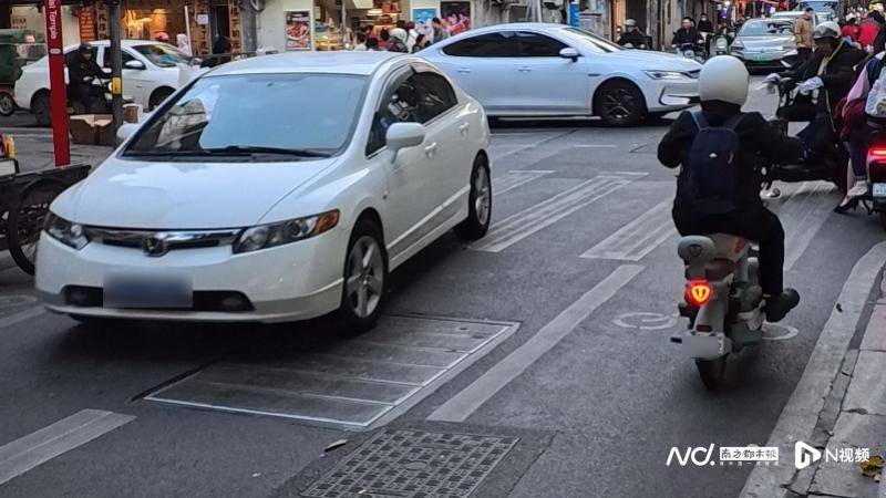 南都N视频记者首次走访现场看到,靠近文昌北路与长寿西路交界十字路口,约100米长的路段内就有超过20个井盖,其中至少8个存在噪音问题。记者现场统计,一分钟内共有16辆车压过井盖时发出“哐当”的响声。此外,由于部分井盖与路面存在高度差,电动自行车驶过时还会出现明显颠簸,存在行驶风险。