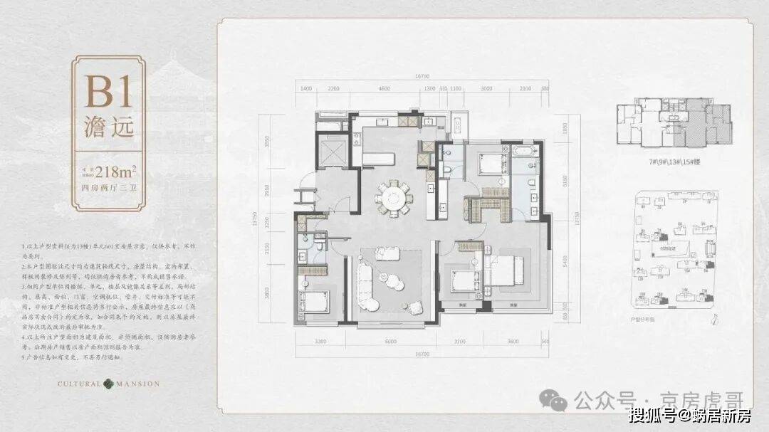 北向的厨房面宽4.3米,中西厨分离,有单独的餐厅空间,也有单独家政间的设计。搭配3.4米的层高,这个户型在海淀豪宅里算天花板了。