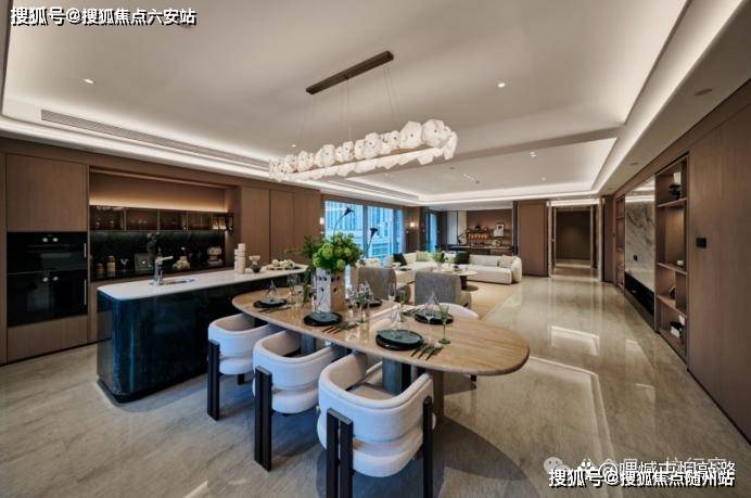 餐客厅的尺度达到了约80-90m²,拓展可达约100㎡,视觉震撼度拉满,采光优越,让空间显得非常阔绰。精装更是重金打造,