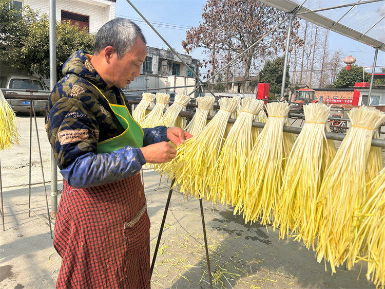 “这些韭黄晒了多久了?今天太阳这么大,这一批韭黄不能像平常一样晒!晒太久,到客户手里就不新鲜了!”1月18日,成都市郫都区青杨韭黄专业合作社负责人马文虎一边在晾晒场里小心翼翼地察看着正在晾干水分的韭黄情况,一边向身边的工人叮嘱道。这一批韭黄是合作社新增的出口日本的订单,即将通过空运,历经48小时送达日本。