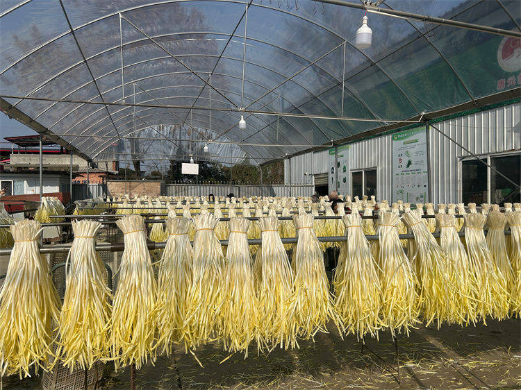 “在低温和干燥环境下,我们的韭黄能保持10天以上的新鲜度。”当被问到韭黄的保鲜时长,马文虎一脸笃定。然而,唐元韭黄鲜香脆嫩的独特优势,也正是加工环节的最大挑战——由于叶片含水量高、极易折损,每一道环节都需要小心翼翼。目前,从撕皮到包装,许多环节仍高度依赖熟练人工,控制力度、时长贯穿整个商品化处理过程。