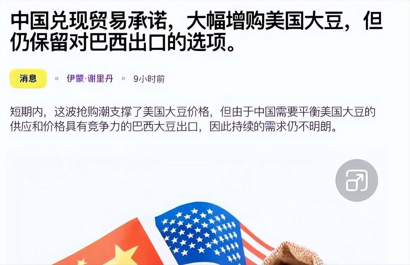 这种既要赚中国的钱,又要卡中国脖子的算盘,注定无法持久。中国所需要的,绝不是这种施舍式的开放,而是一个公平公正的竞争环境。而这1200万吨大豆,既是履行商业合同的成果,也是中美关系现状的真实写照。
