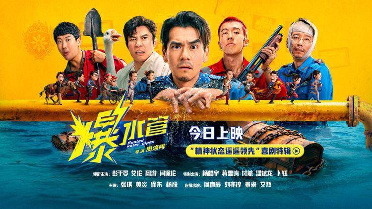 神经喜剧《爆水管》由周涤啡执导,彭于晏、艾伦、周游、闫佩伦领衔主演,杨皓宇、蒋雪鸣、付航、潘斌龙、卜钰特别出演,张琪、黄炎、徐东、杨朕主演,周彦辰、刘亦淳、景瓷、艾然友情出演,由上海淘票票影视文化有限公司、含章贞成(北京)文化传播有限公司、上海腾飞影业传媒集团有限公司、海南奥陶纪影业有限公司、象山栩多木影视文化有限公司出品,由成都市电影集团有限责任公司、江西慈文影视文化传媒有限公司、北京幕间映画娱乐有限公司、北京大晟数娱科技有限公司、北京初之影业有限公司联合出品,正在全国热映中,即刻购票,年前爆笑!