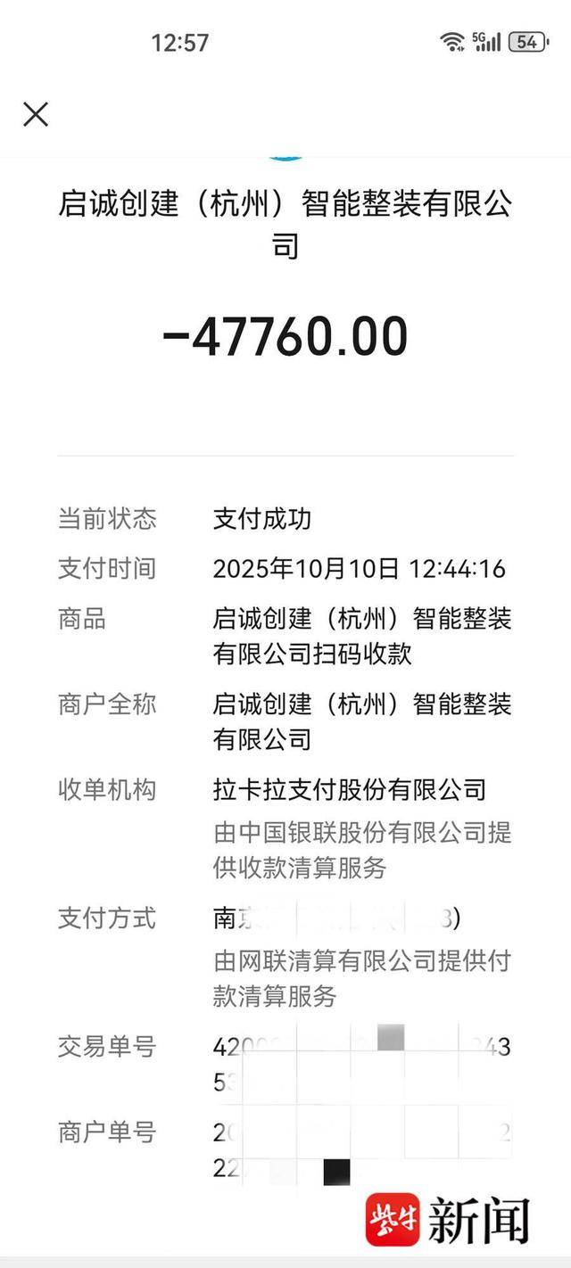 南京的黄先生在句容购买了一套别墅,面积200平方米,毛坯房,一直空置。2025年5月份,他陆续接到京瑞居工作人员的电话,并开出相对优越的条件,黄先生动心了。“我这套房子离茅山风景区不远,他们说用于做民宿,听着合理,收益也不错。”黄先生告诉记者,跟启诚创建(杭州)智能整装有限公司(简称杭州启诚创建)鉴定了装修合同,又委托南京满住科技有限公司运营,合同“授权签字人”均为杨某。