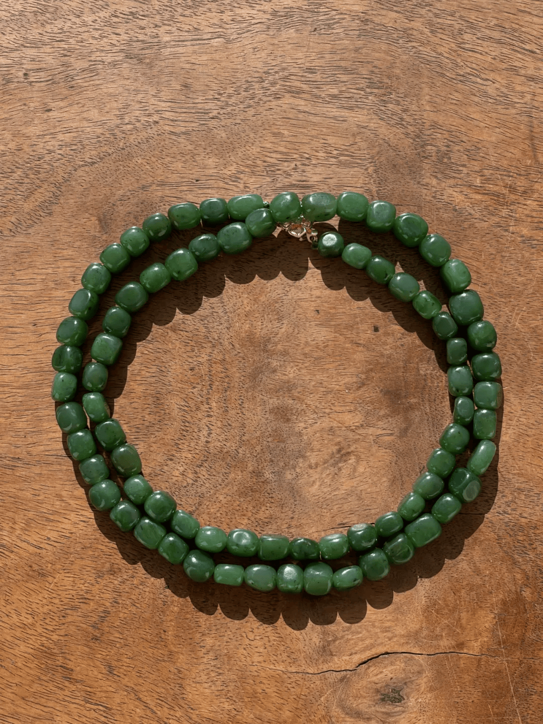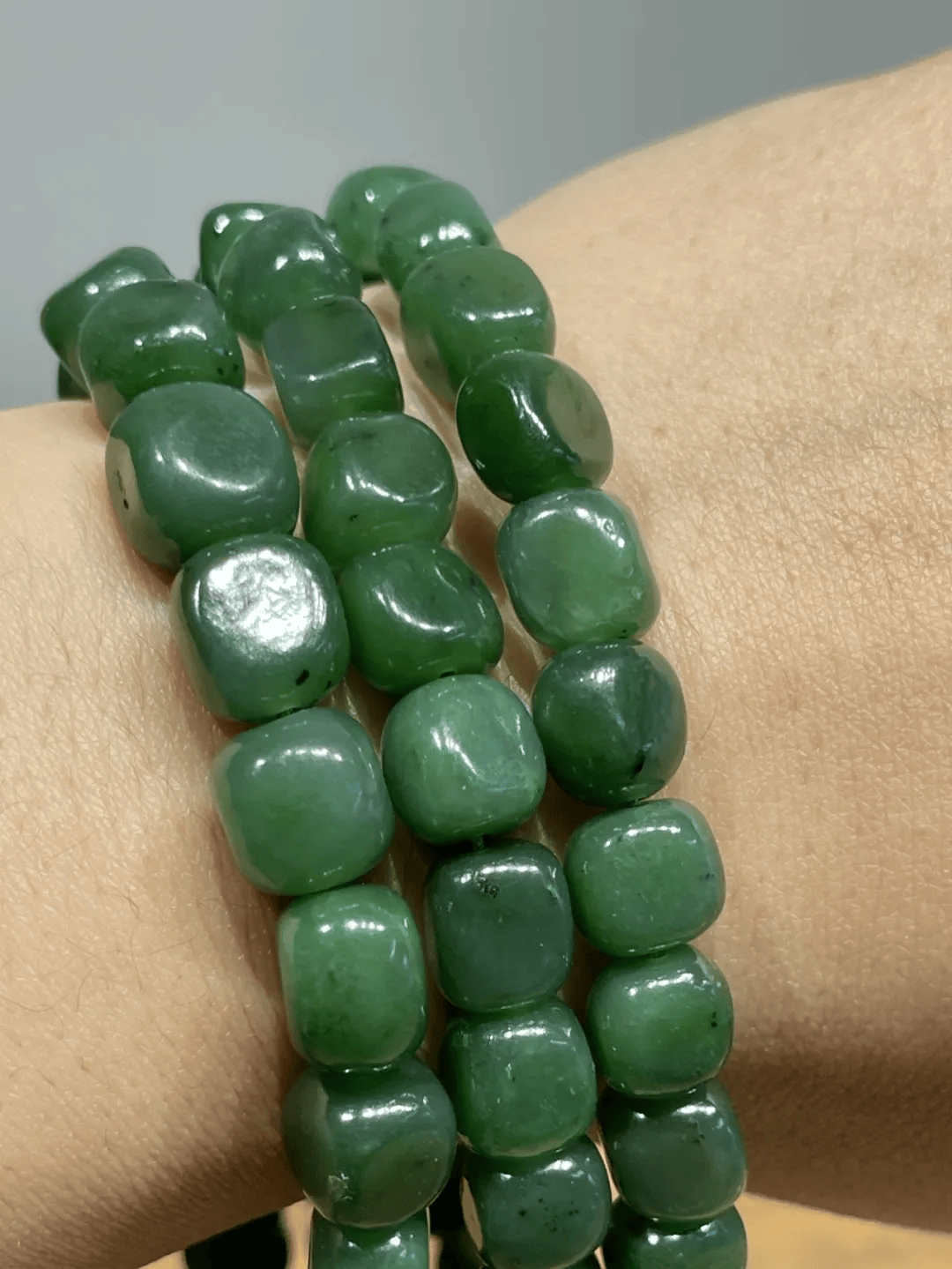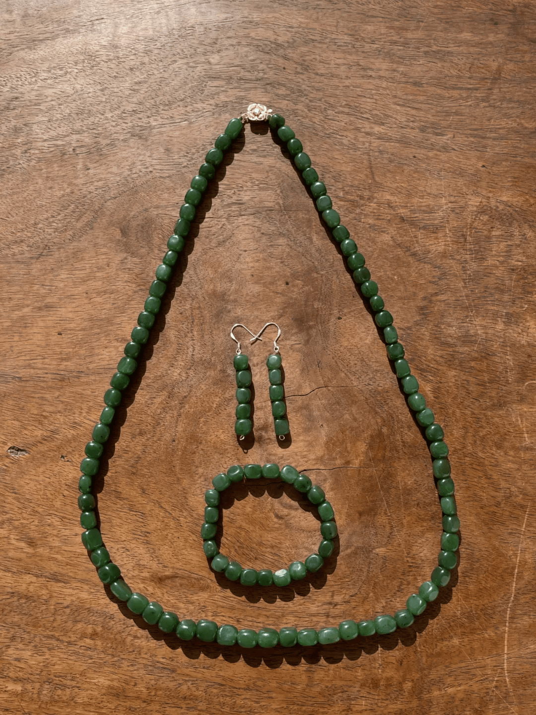 扫二维码收藏【和田碧玉骰子珠首饰三件套组】