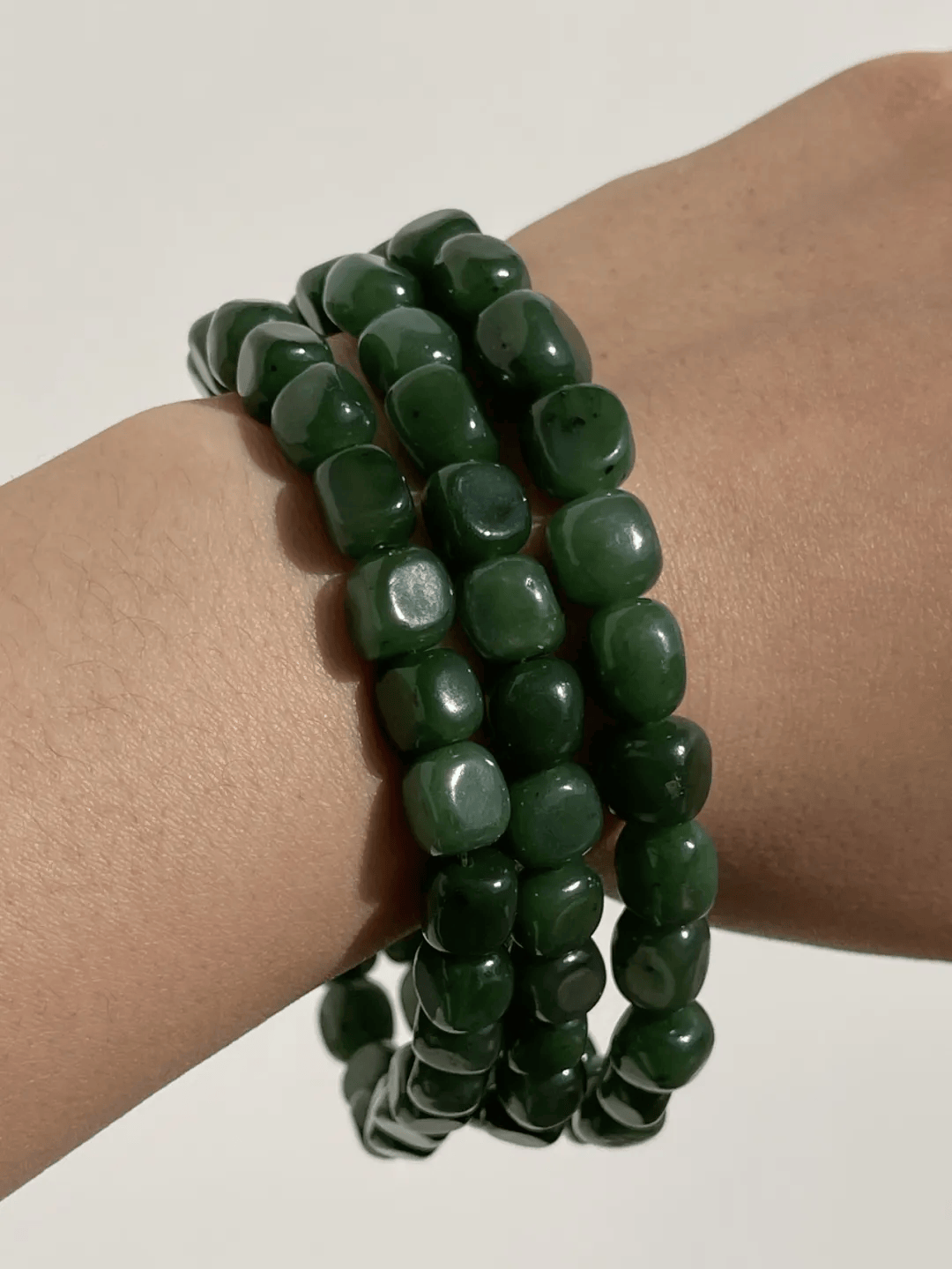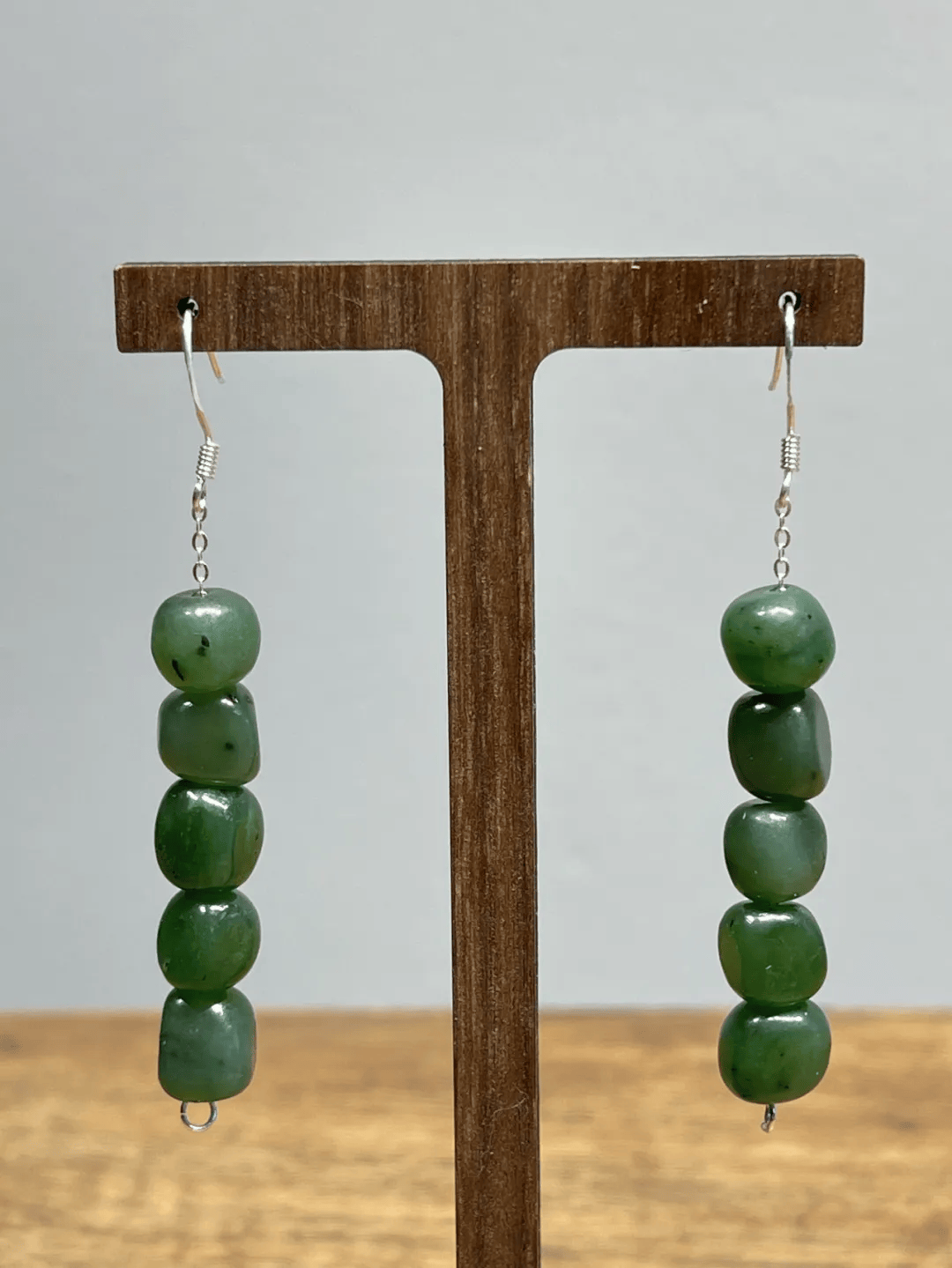 这是一组和田碧玉骰子珠设计而成的项链、银钩耳坠以及手链三件首饰套组,和田淡碧绿玉骰子珠共108粒,此组天然未染色的和田碧玉骰子珠,珠型独特、全组质地半通透,色泽淡碧绿偶带新疆和田碧玉特有的深色斑点,属于优良的和田籽料碧玉质,全组色泽柔美清新,气质非凡。