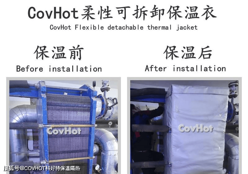 2.严密贴合,节能安全:根据设备外形精准测绘缝制,可实现与换热器及其管路附件的无缝贴合,有效消除泄漏点,热能损失显著降低。优异的保温性能不仅节约了运营成本,也避免了人员烫伤风险,提升了安全性。