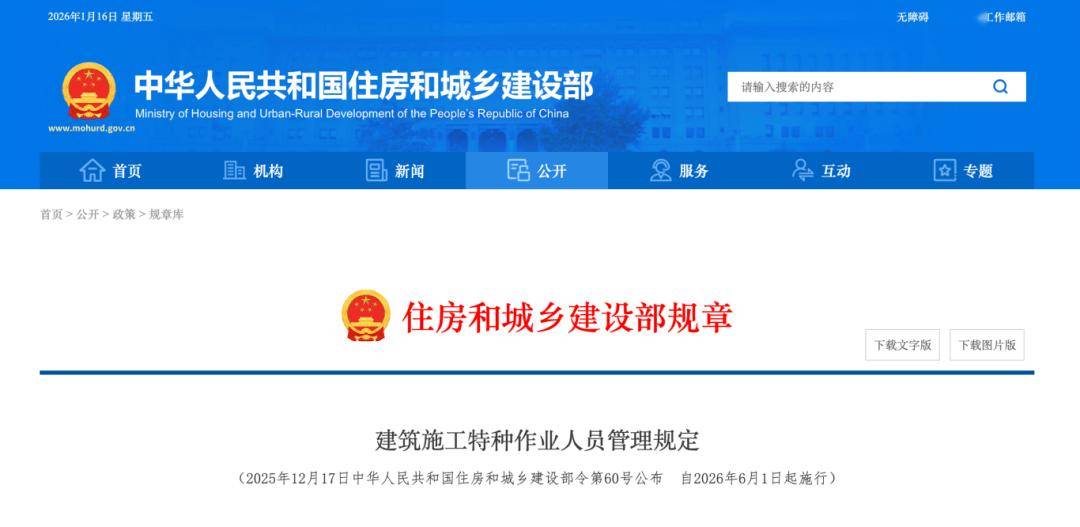 第四十五条 本规定自2026年6月1日起施行。《住房和城乡建设部关于印发〈建筑施工特种作业人员管理规定〉的通知》(建质〔2008〕75号)同时废止。