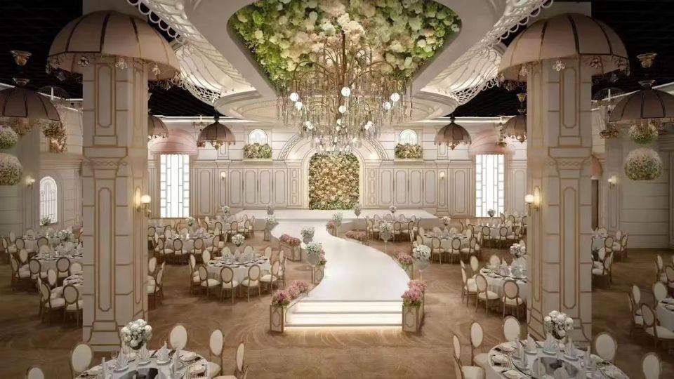 - 可搭配镜面元素、金属线条(香槟金、玫瑰金),提升空间精致度,适配高端宴会场景。