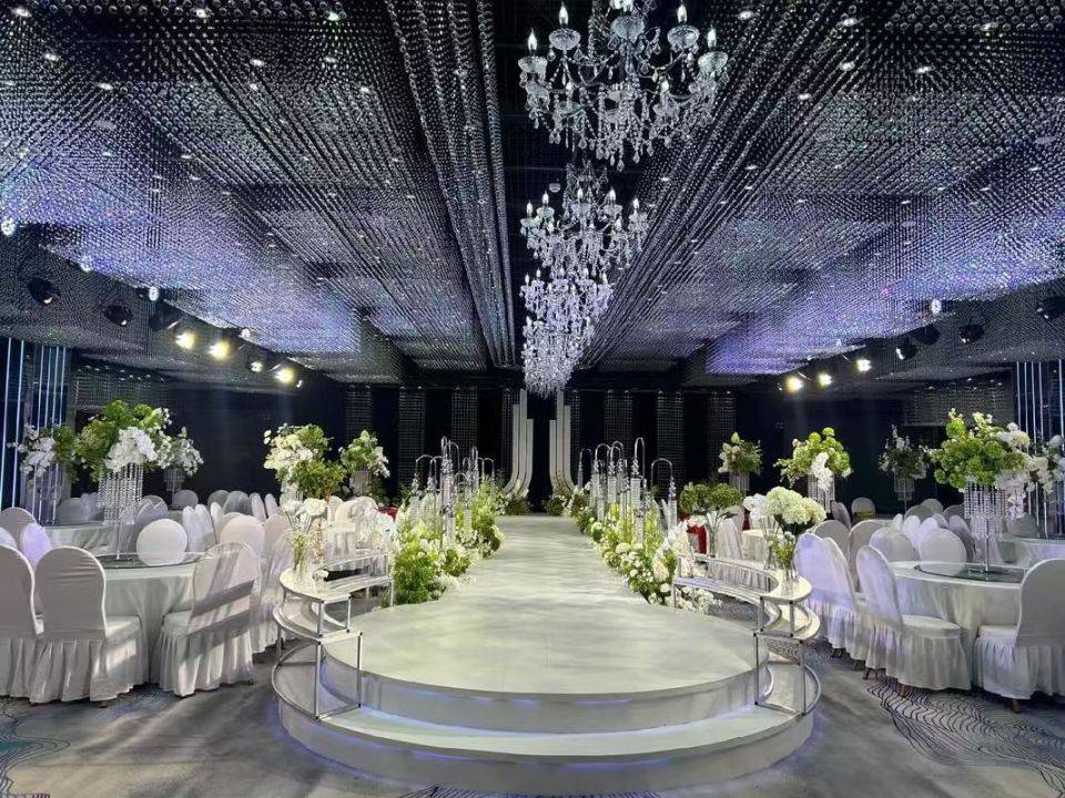 - 氛围照明:灯带、星光灯、染色灯(暗藏在吊顶、墙面造型内),色温可调节(2700K~6000K),适配婚宴的浪漫感、会议的正式感;