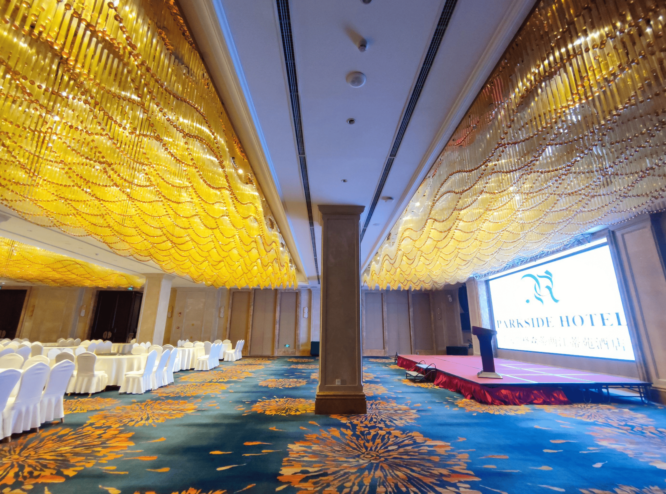 - 可搭配镜面元素、金属线条(香槟金、玫瑰金),提升空间精致度,适配高端宴会场景。