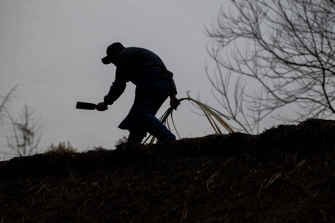 1月22日,成都杜甫草堂博物馆,维修中用到的茅草采自成都周边,竹子就生长在杜甫草堂博物馆里。