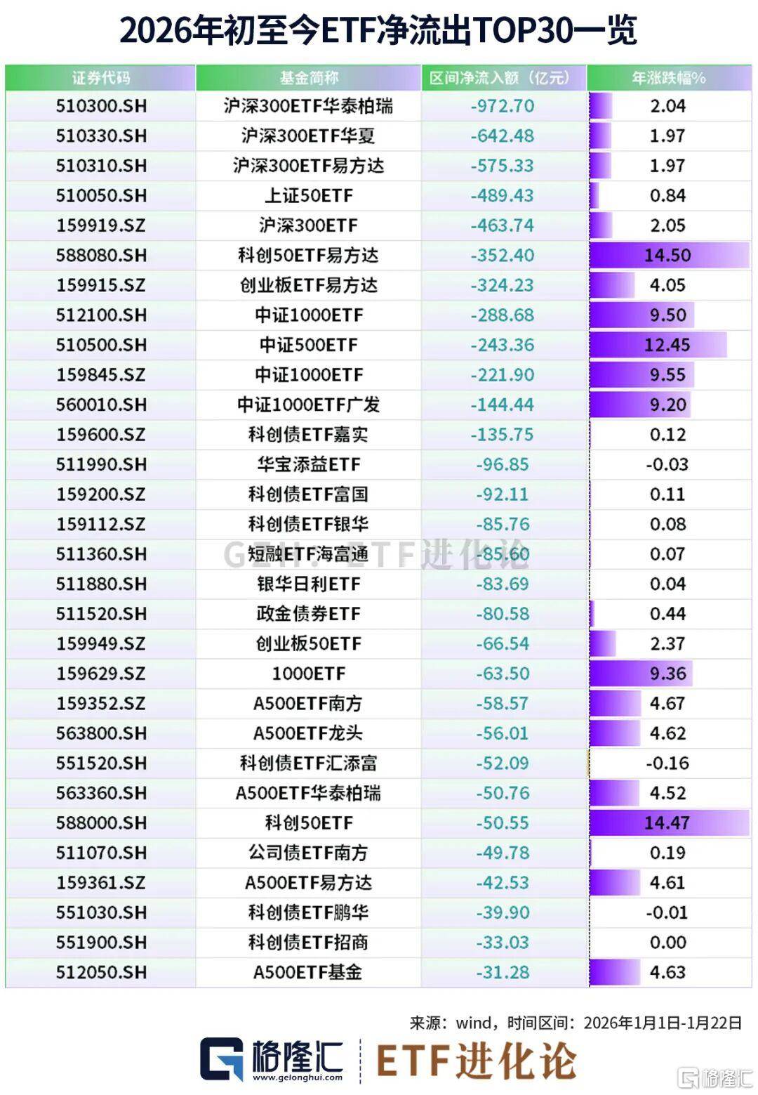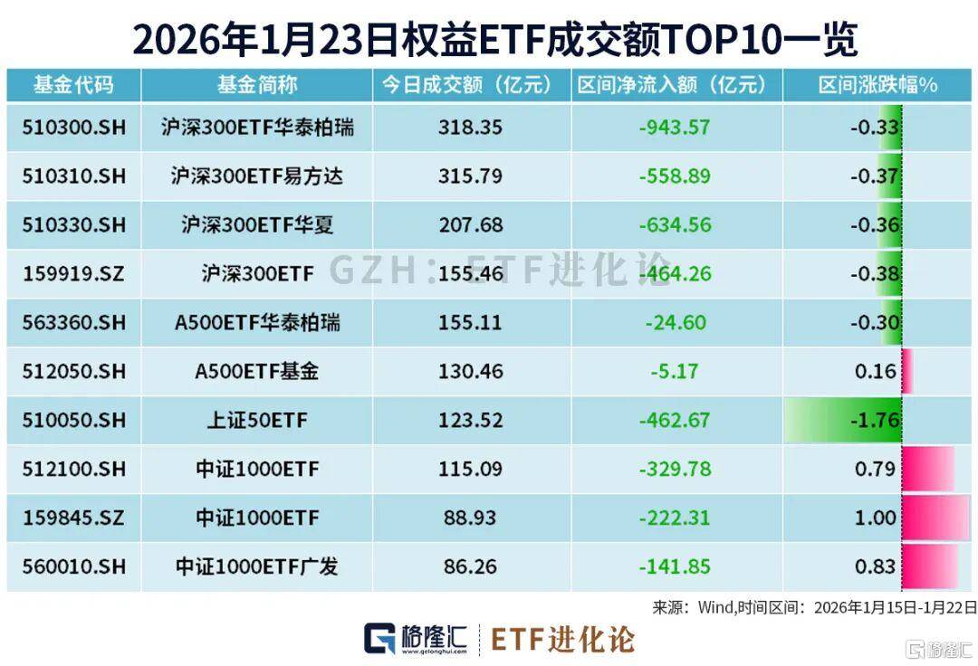 沪深300ETF华泰柏瑞、沪深300ETF华夏和沪深300ETF易方达分别净流出972.70亿元、642.48亿元和575.33亿元。