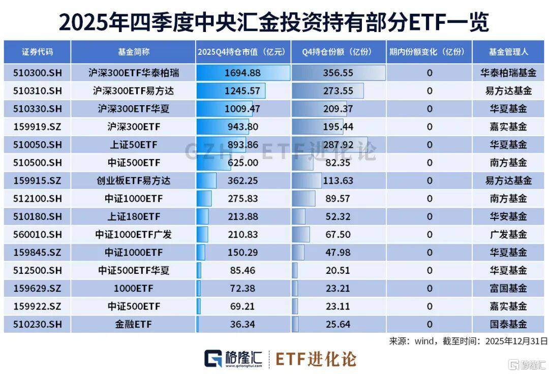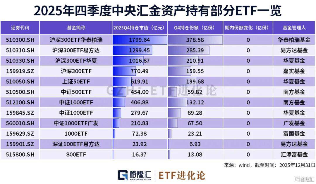 老规矩,依旧按照“国家队”的2个具体的投资主体来透视四季度持仓变化: