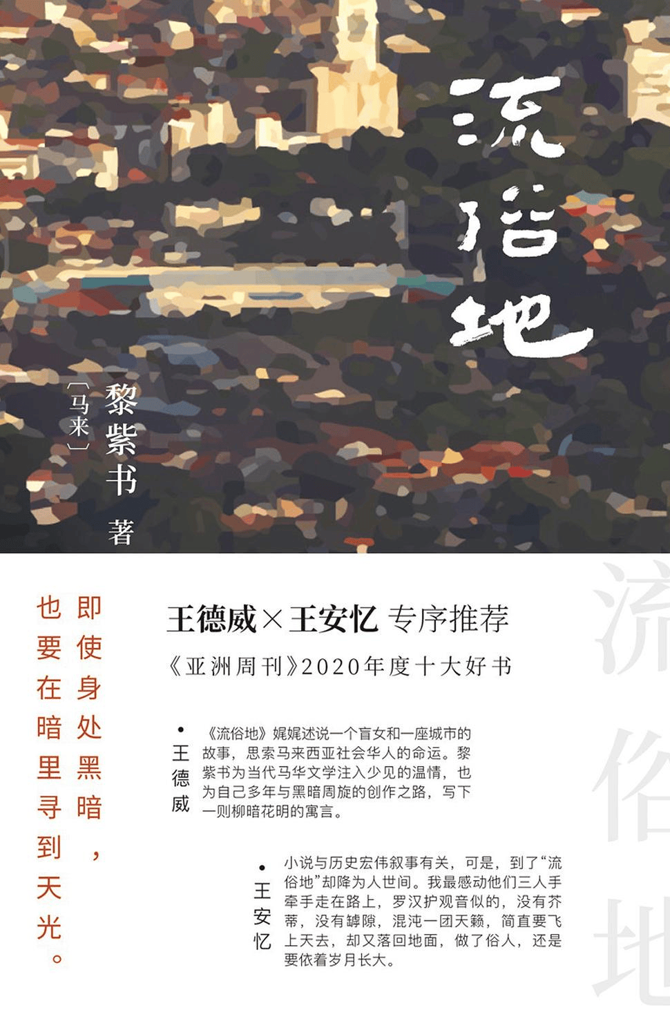 作为马来西亚华人作家黎紫书的代表作,《流俗地》以马来西亚锡都怡保为背景,用细腻的笔触勾勒出市井街巷里的众生相。书中以盲女银霞的视角,串联起邻里间的悲欢离合,在平凡的日常叙事中,藏着对人性、亲情、命运的深刻洞察。黎紫书的文字充满地域特色与生活质感,那些关于“平凡与坚守”的故事,总能触动人心最柔软的角落。阅读这本书,既能领略多元文化背景下的生活百态,也能在烟火气中感悟生命的韧性。
